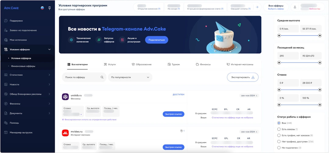 Adv.Cake: Комплексные инструменты и эксклюзивные офферы для роста дохода веб-мастеров