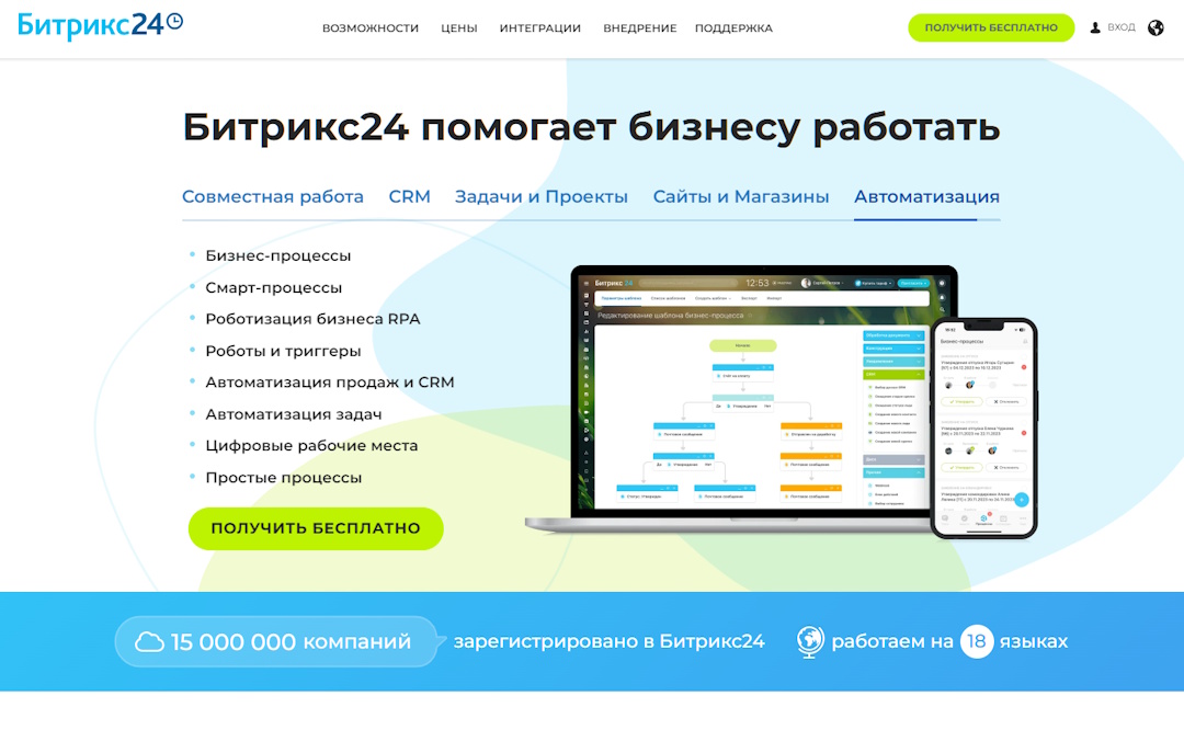 Платформа Битрикс24 предлагает широкий спектр инструментов для автоматизации и управления различными аспектами бизнеса: