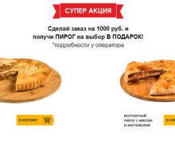 В День Вашего рождения, а также за 7 дней до и 7 дней после, при предъявлении паспорта – скидка 10% либо пирог в подарок (сытный с мясом или сладкий с вишней).