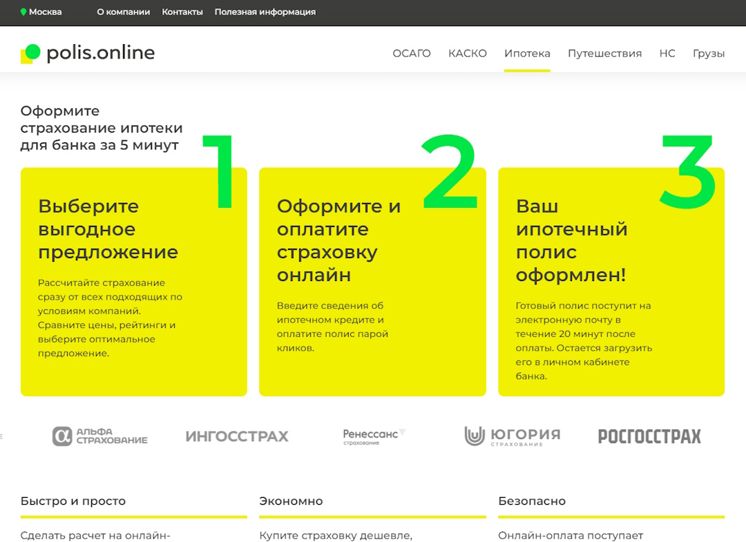 - Безопасность: Оформление полиса происходит на защищенной онлайн-платформе, гарантирующей конфиденциальность ваших данных.