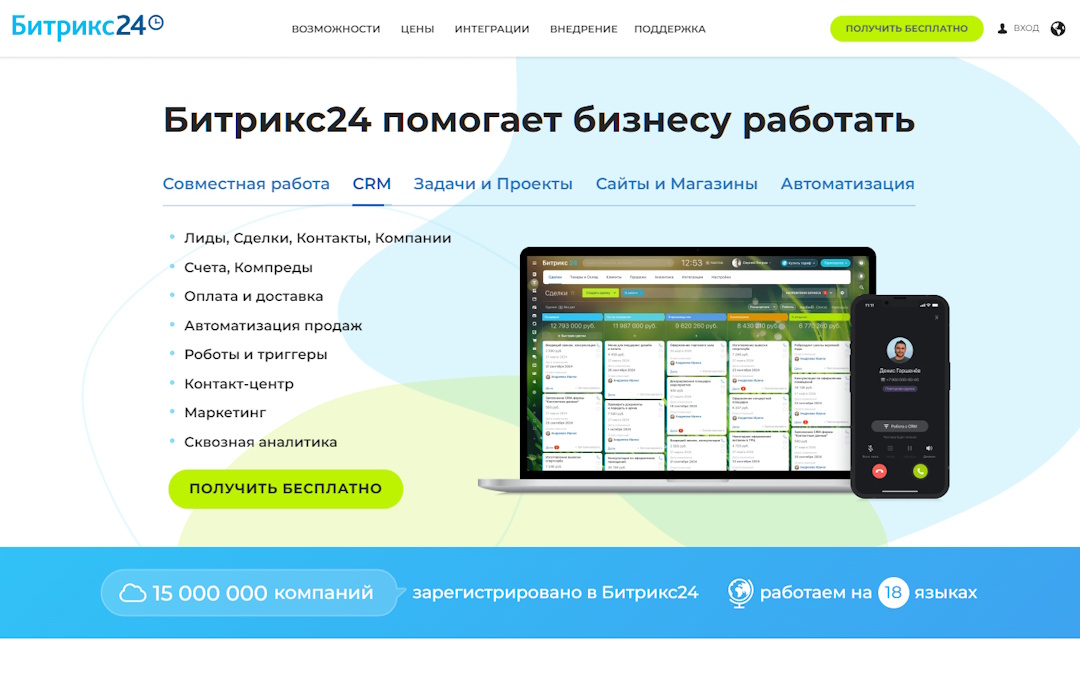 Оптимизируйте свой бизнес и повысьте продуктивность с помощью Битрикс24. Зарегистрируйтесь бесплатно и начните использовать платформу прямо сейчас!